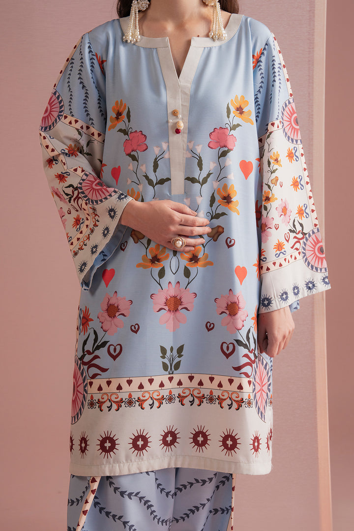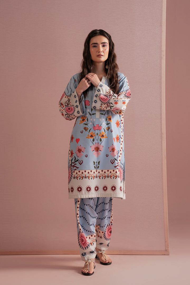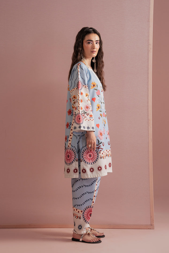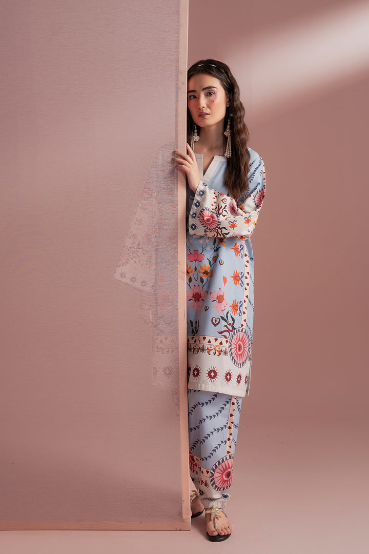 Style: Two-piece printed co-ord set with a straight-cut kurta and shalwar.
