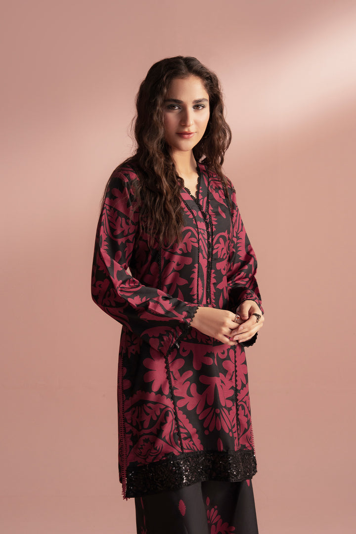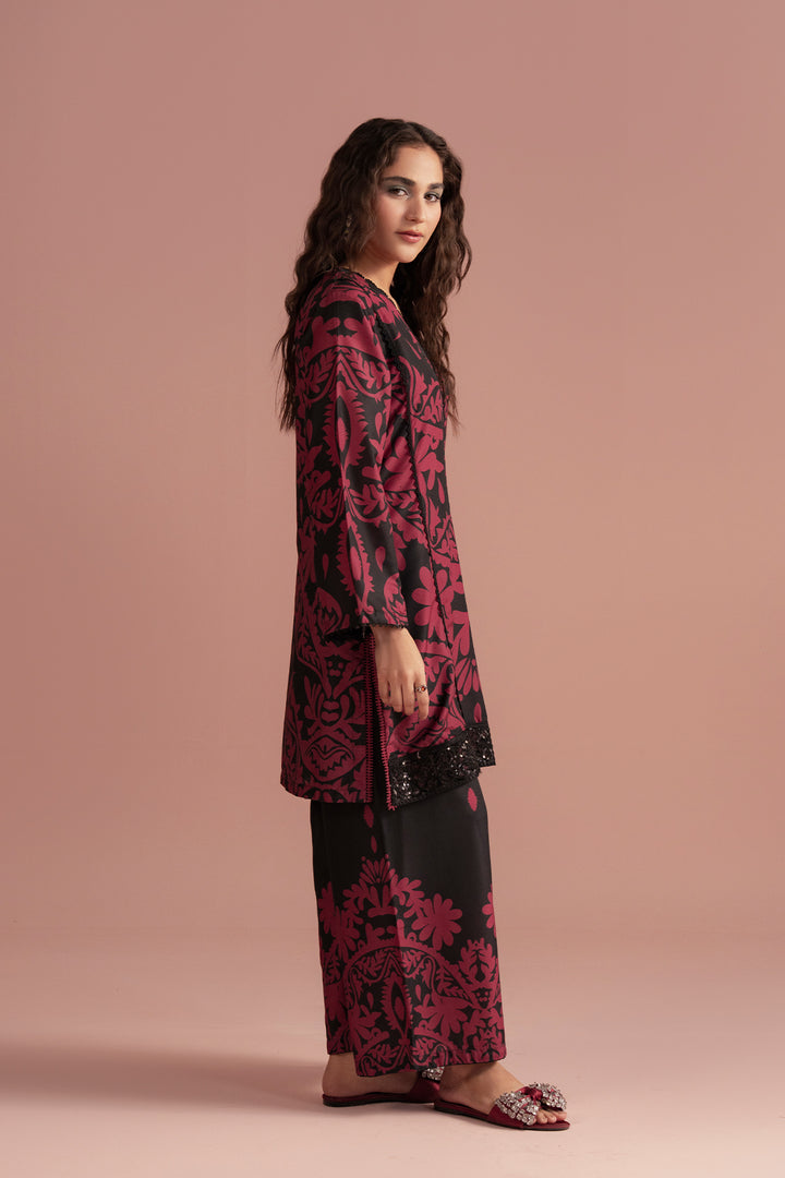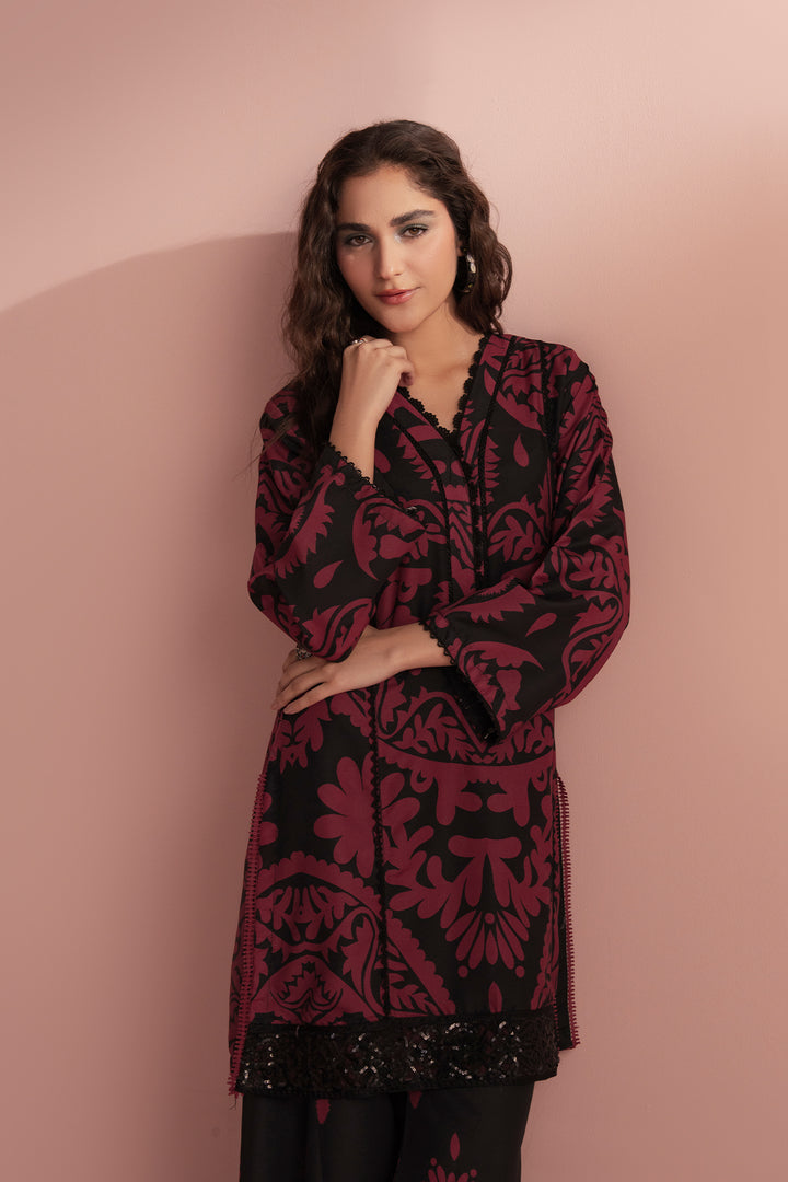 Crimson exudes bold femininity and timeless allure. The striking burgundy base contrasted with intricate black patterns creates a look that’s both fierce and elegant — a perfect statement piece for those who embrace confidence and grace.