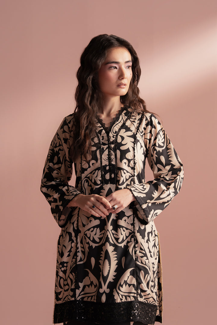 Hiba brings an air of classic sophistication. The interplay of black and beige creates a timeless contrast, while the detailed pattern work adds a regal charm. Perfect for elegant evenings or refined daywear, this design embodies understated luxury.