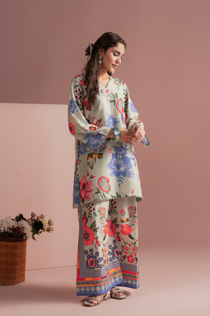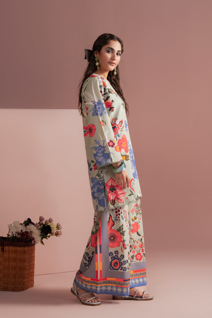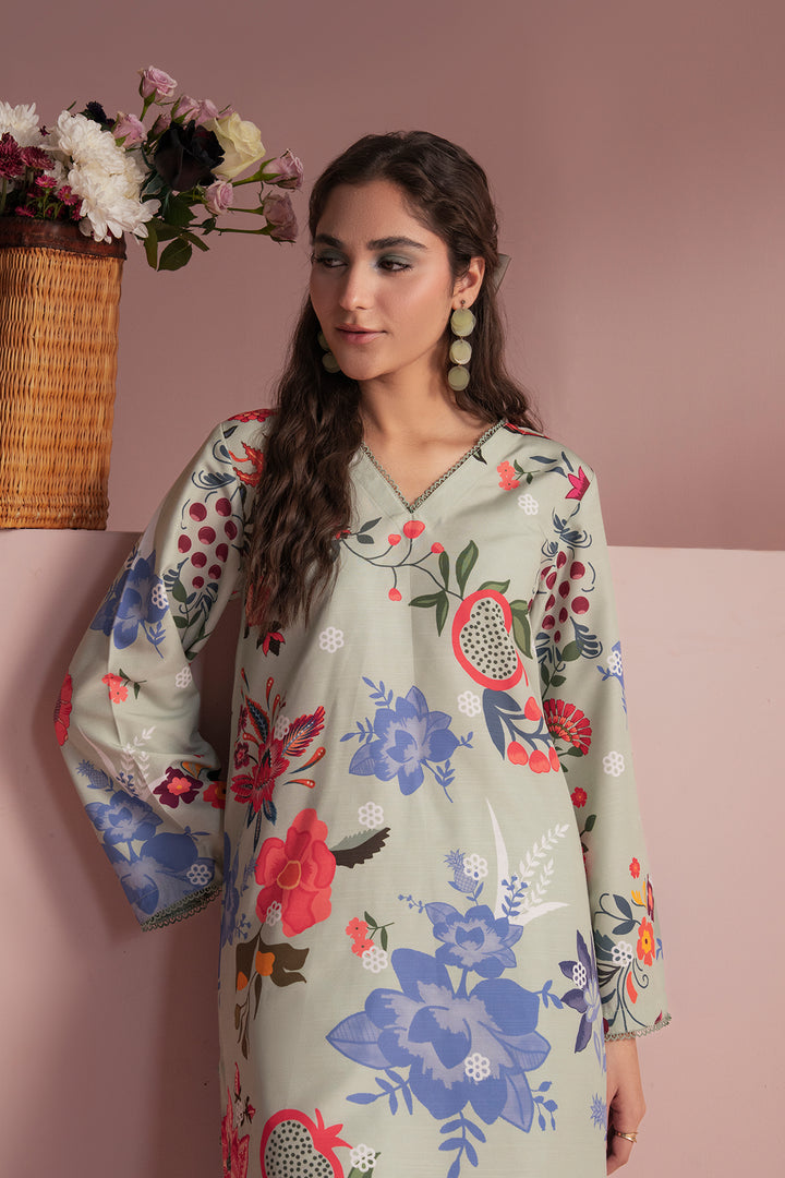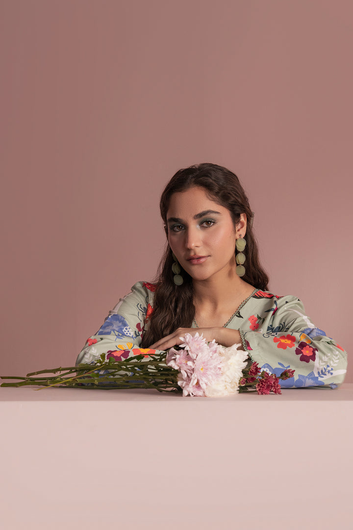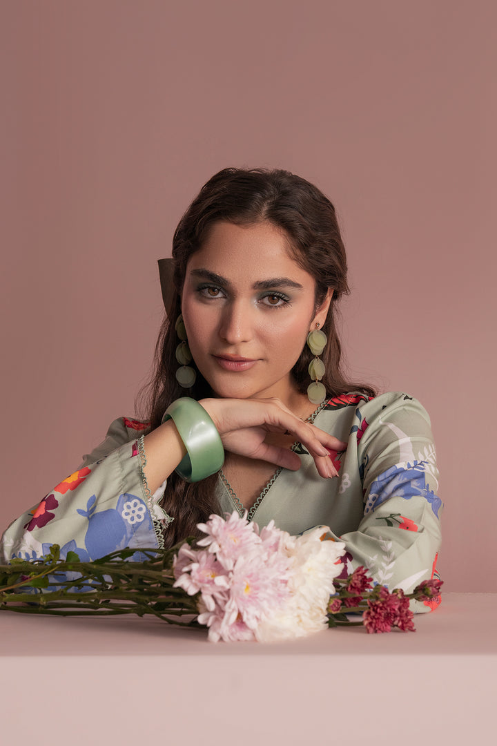 Israr brings together serenity and vibrancy in a beautifully balanced ensemble. The soothing sage base is elevated by bold floral motifs in striking hues, bordered with intricate detailing for a refined finish. Perfect for effortless daywear, this design from Aik Pret’s Minnah Fall Collection embodies elegance with a touch of artistic flair.