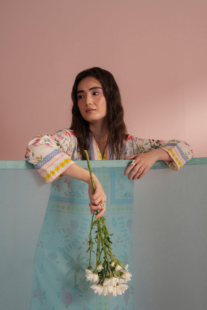Colour Palette: Ivory, Sky Blue, Sunshine Yellow, Soft Pink, Green