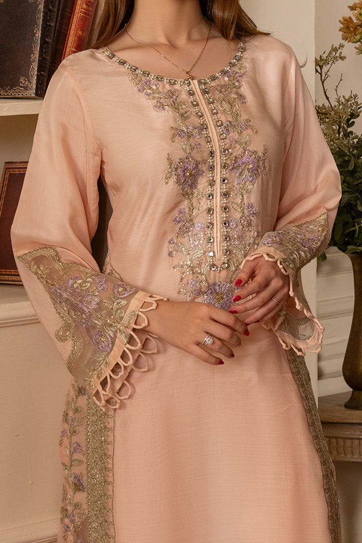Round neckline with keyhole detail featuring thread, tilla, and sequin embroidery